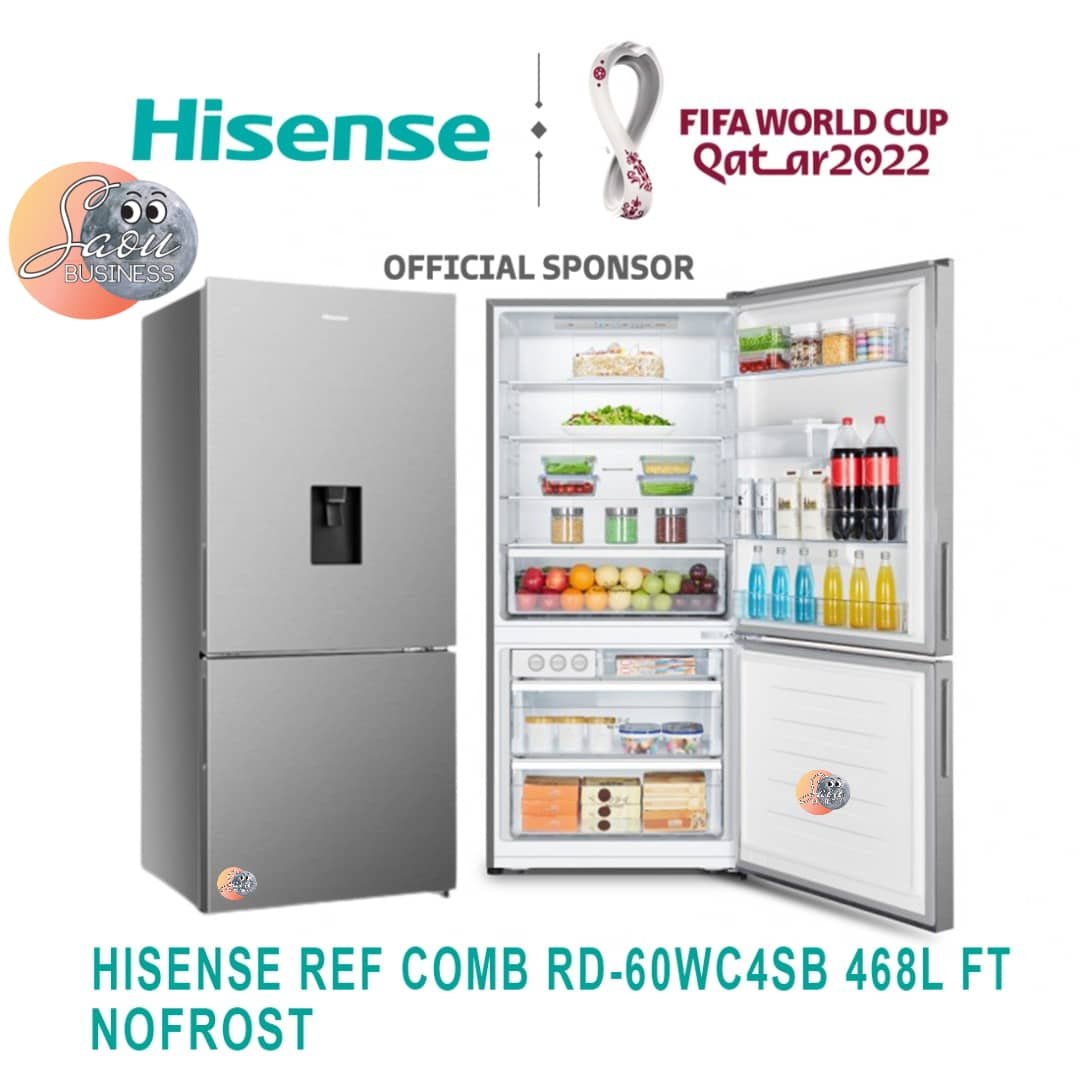 Voici la fiche technique du réfrigérateur Hisense combiné 468L NoFrost avec fontaine, modèle RD60WC4SB :